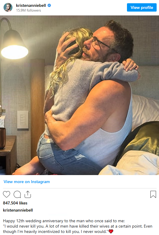 Bell wrote a post that tried to be funny but was accused of normalizing domestic violence. It read, “Happy 12th wedding anniversary to the man who once said to me: ‘I would never kll you. A lot of men have klled their wives at a certain point. Even though I’m heavily incentivized to k*ll you, I never would.’ ” While some found it funny, others thought it was distasteful to joke about domestic violence. She refused to apologize for the post.