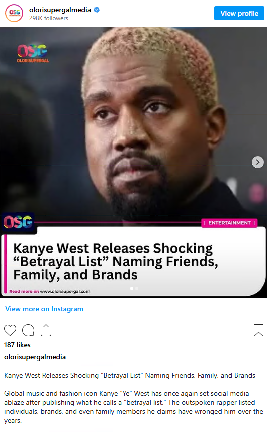 West is no stranger to controversy… he’s made comments about the Kardashians trafficking their kids and insulted Beyoncé and Jay-Z’s kids. He also arranged for his daughter, North, to meet Andrew Tate. In September, he posted a “betrayal” list on X, including his own daughter and ex Kim Kardashian. Other names included Diddy, Trump, LeBron James, Pete Davidson, and even cartoon characters, in a confusing twist of events.